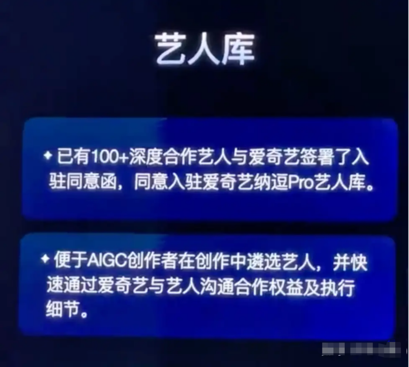 直到那天,爱奇艺在世界大会上宣布,已有超过百位艺人入驻AI艺人库“纳逗Pro”,陈哲远、丞磊、曾舜晞、蒋龙等人的照片在大屏幕上一一闪现。创始人龚宇的发言掷地有声:“真人实拍或成非物质文化遗产。”在他的蓝图中,AI能让演员一年从拍4部戏变成14部,成本降至真人剧的二十分之一。