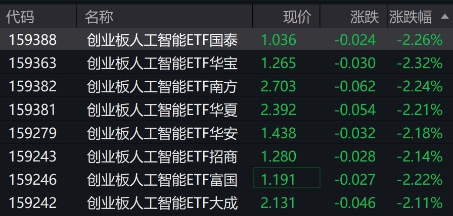 受盘面影响,创业板人工智能相关ETF跌超2%。